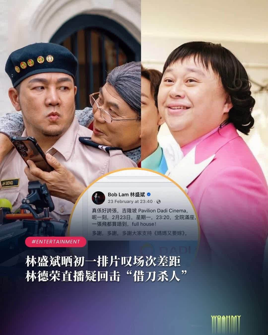 2月25日,马来西亚多家华文媒体报道,主演《阿炳VS梁婆婆》的林德荣当天率主创团队开直播,期间聊到排片话题时突然从普通话切换为广东话,以不点名的方式批评了林盛斌。