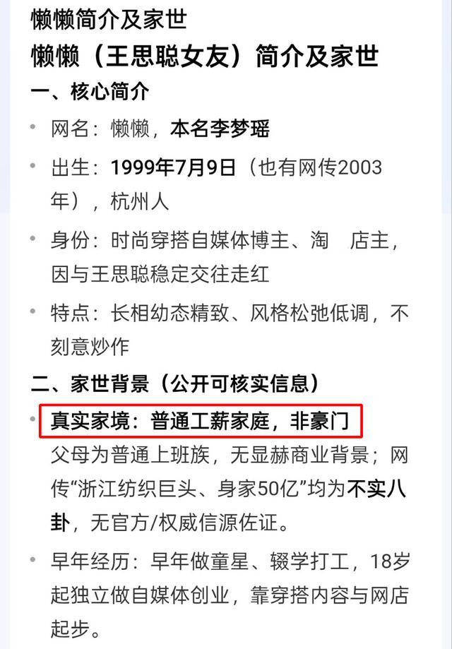 父母只是普通的工薪家庭,并非豪门中人。而懒懒学历并不高,18岁开始就独立做自媒体,靠着穿搭内容和网店起步,还曾当了一段时间的服装模特。